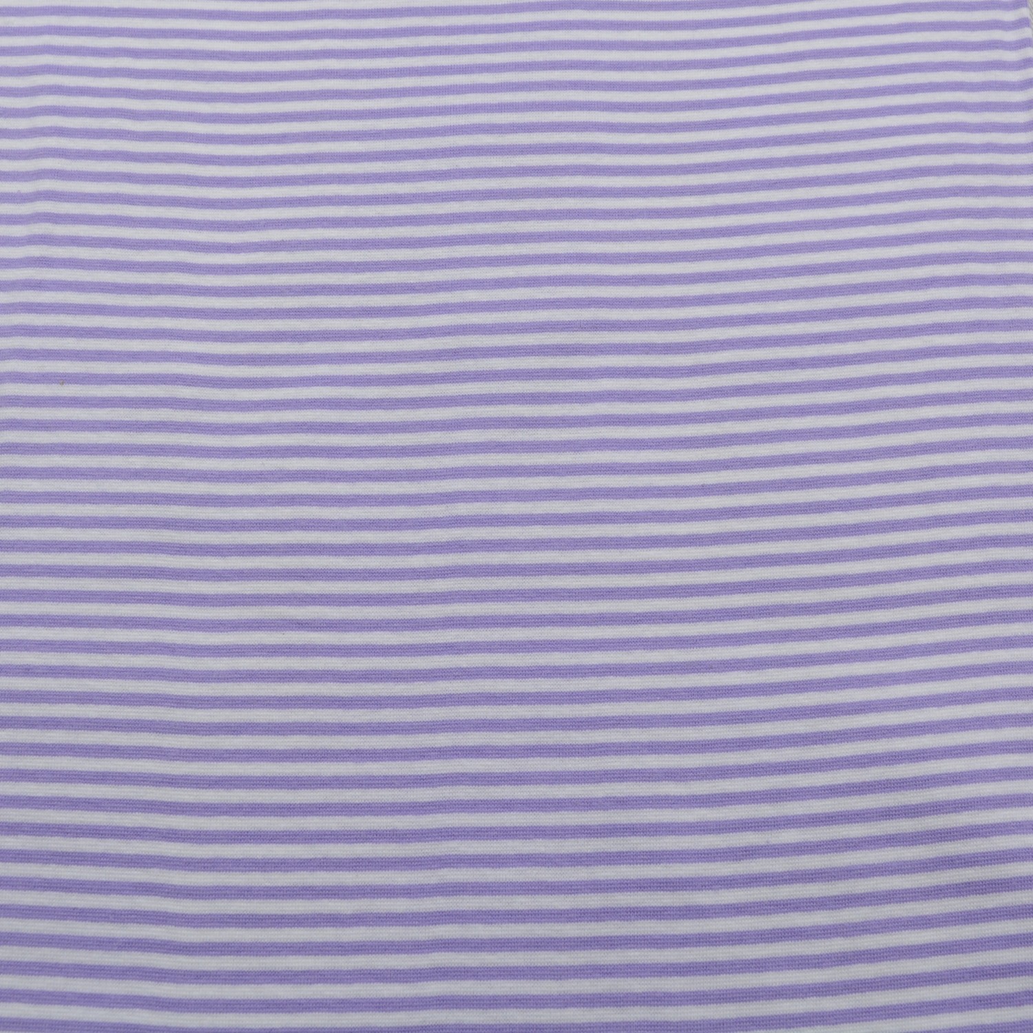 Dieser feine Bündchenstoff mit schmalen Streifen in Lila und Weiß überzeugt durch seine hohe Elastizität und ausgezeichnete Rücksprungkraft. Durch die weiche Haptik und den angenehmen Griff eignet sich der Stoff perfekt für Abschlüsse an Ärmeln, Säumen, Hosenbündchen oder Kragen.