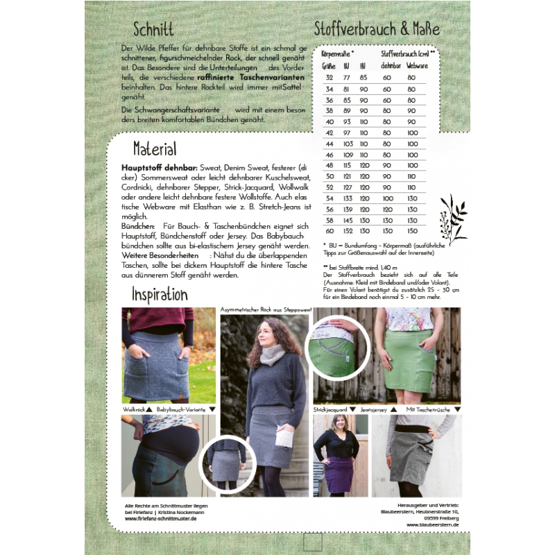 Das Schnittmuster Wilder Pfeffer ist ein schmal geschnittenen Rock für Damen.