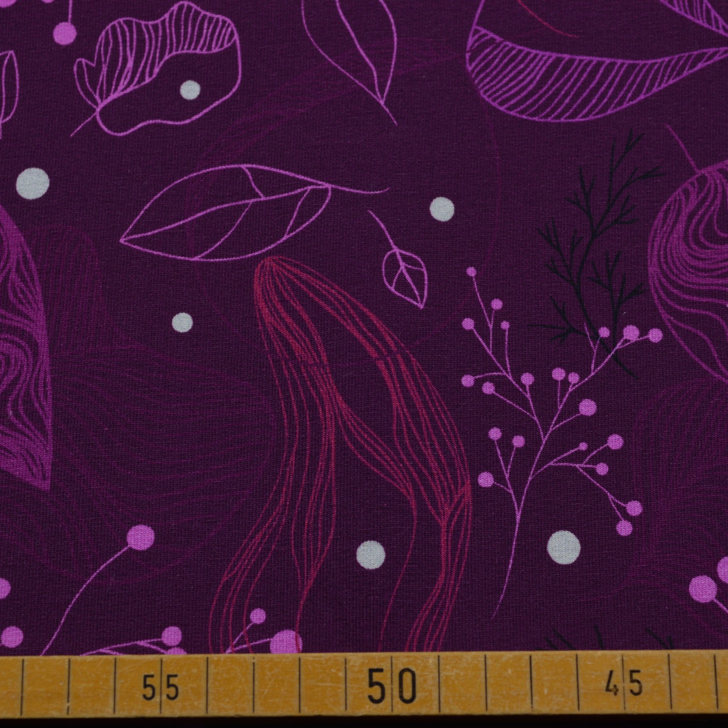 Dieser wunderschöne French Terry besticht durch sein florales Muster in eleganten Bordeaux- und Pinktönen. Der Stoff ist angenehm weich, formstabil und durch den Elasthan-Anteil besonders dehnbar. Mit 250 g/m² ist er ideal für Bekleidung wie Pullover, Hoodies, Kleider, Röcke oder lässige Hosen geeignet.