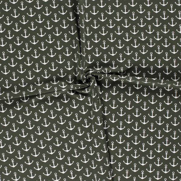 Die Oberfläche ist mit Anker auf dunkelgrün farbenem Hintergrund bedruckt.