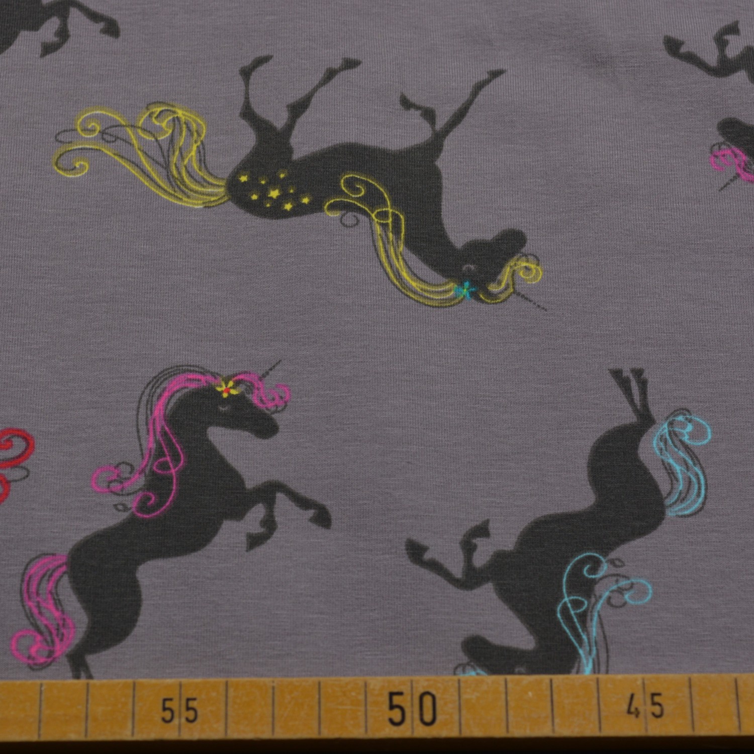 Dieser bezaubernde Baumwoll-Jersey mit verspieltem Pferdemuster auf grauem Hintergrund bringt Schwung in jedes Nähprojekt. Die dynamisch gestalteten Pferde in Schwarz, kombiniert mit farbenfrohen Mähnen in Rot, Gelb, Blau und Pink, verleihen dem Stoff eine fröhliche und lebendige Ausstrahlung. Der hochwertige Stoff besteht aus 95% Baumwolle und 5% Elasthan, was ihn angenehm weich, elastisch und hautfreundlich macht. Mit einer Breite von 150 cm und einem Gewicht von 200 g/m² eignet sich dieser Jersey ideal für die Herstellung von Kleidern, T-Shirts, Röcken und Kinderbekleidung. Perfekt für kreative Designs, die begeistern!