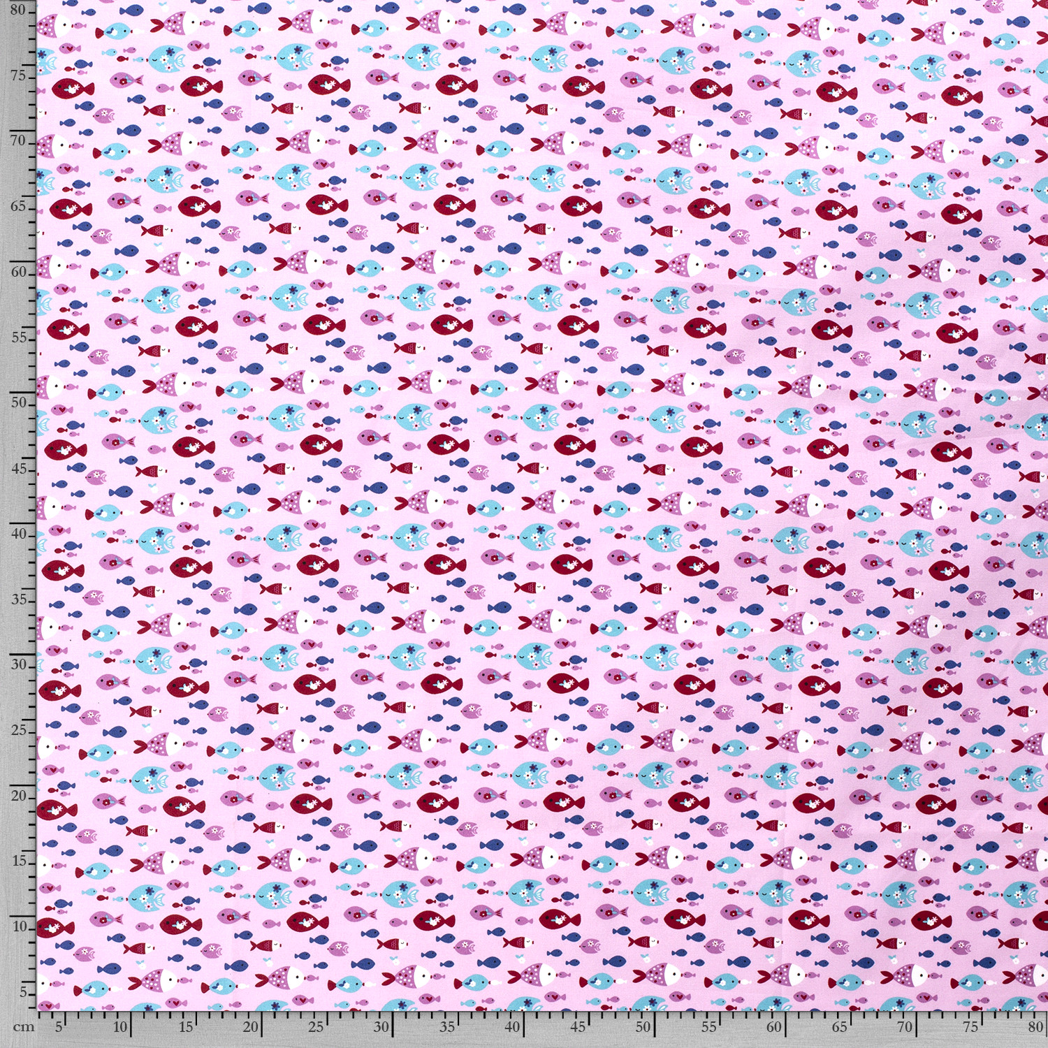 Die Oberfläche ist matt mit vielen verschieden großen Fischen in unterschiedlichen Farben bedruckt.