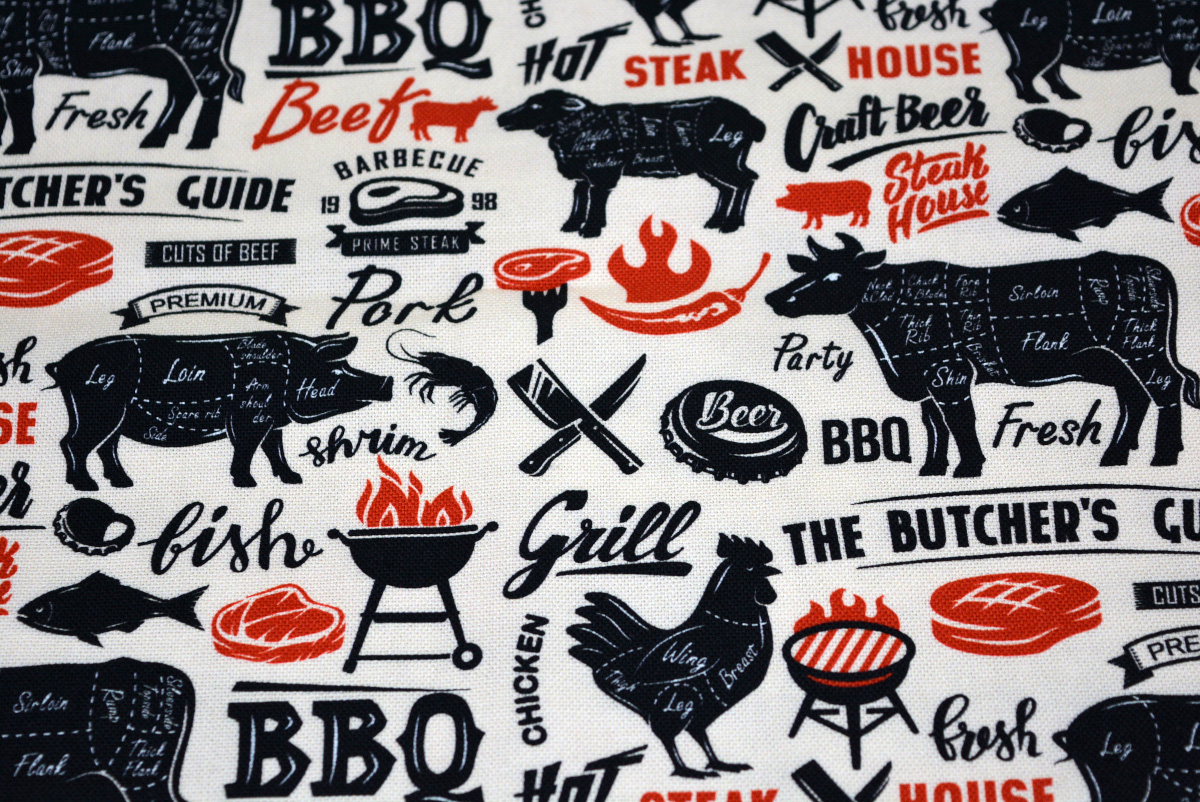 Schöner Baumwoll Deko Druck im Design BBQ Deluxe.