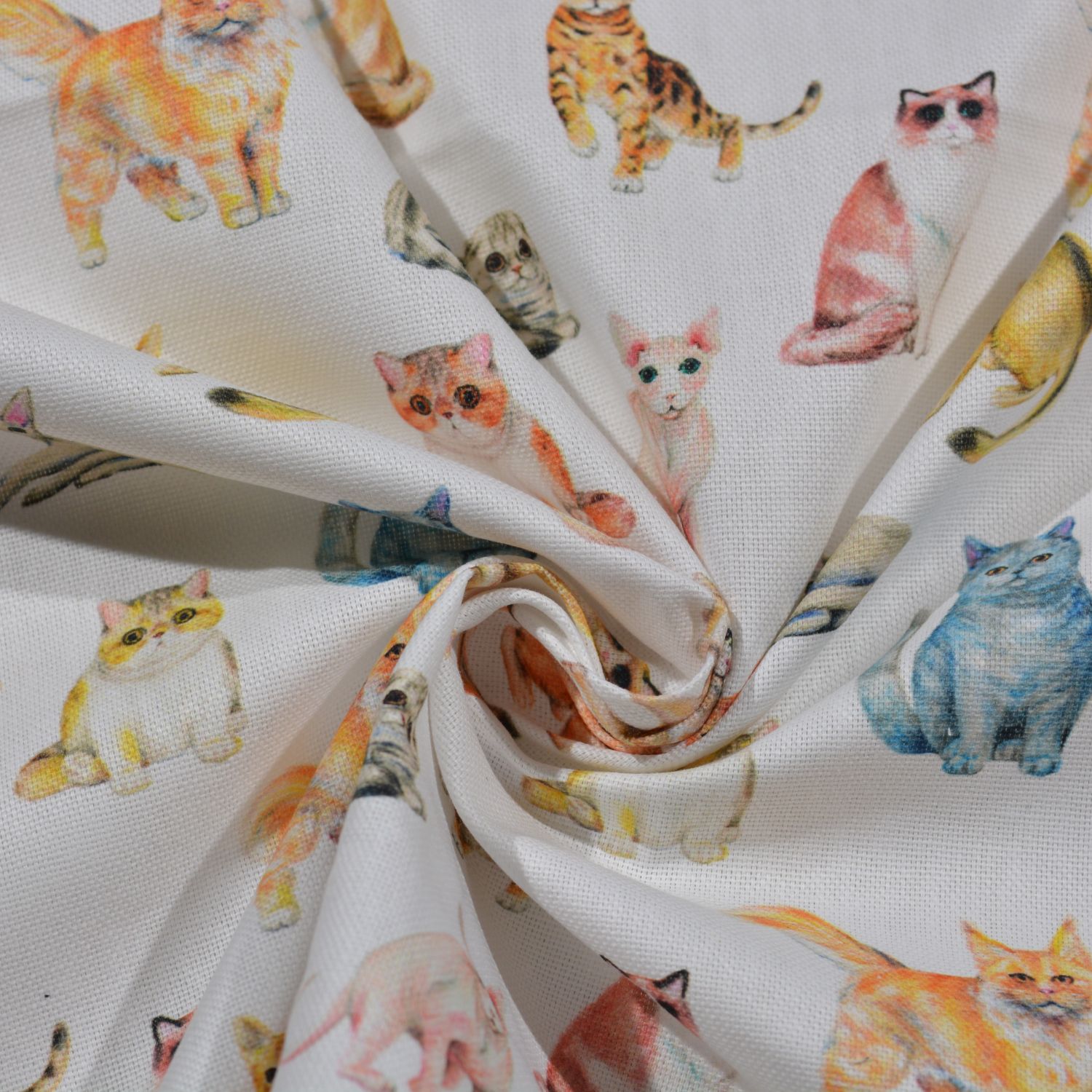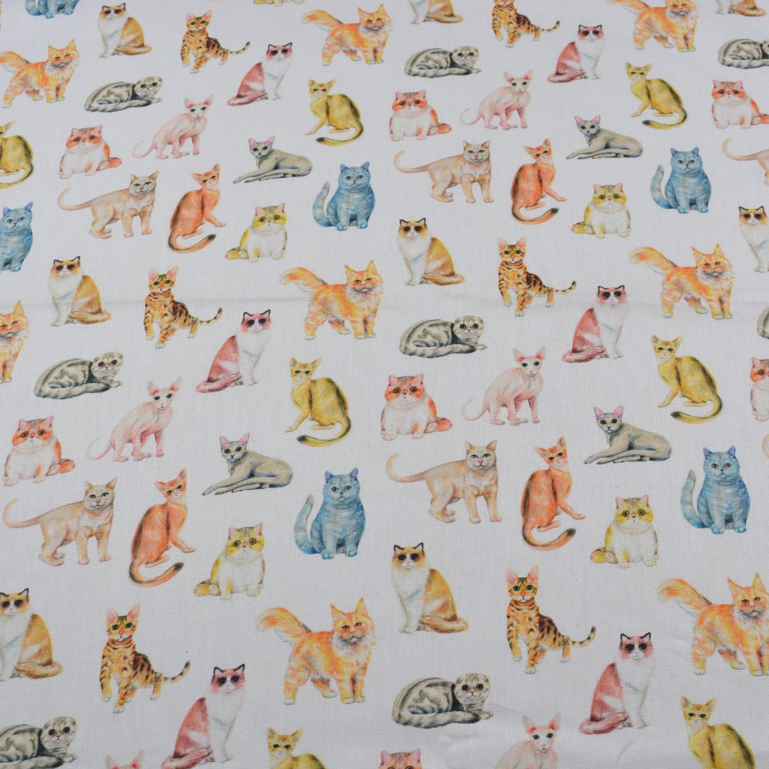 Dekostoff „Rocco“ – Bunte Katzen auf Weiß