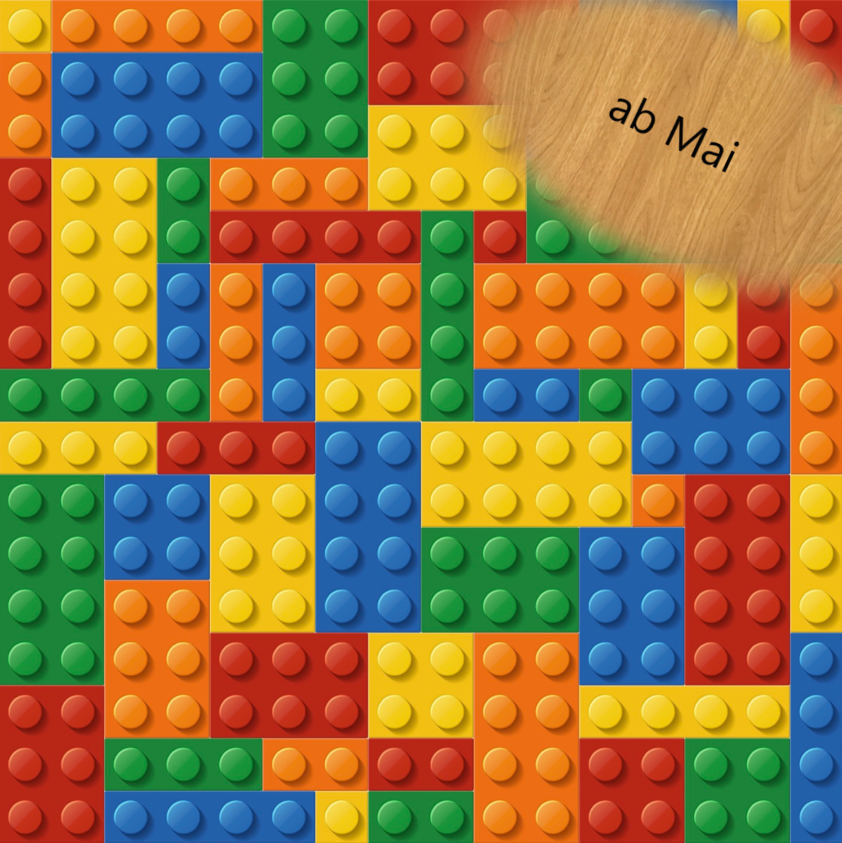Die Oberfläche ist mit bunten Bauklötzen bedruckt.