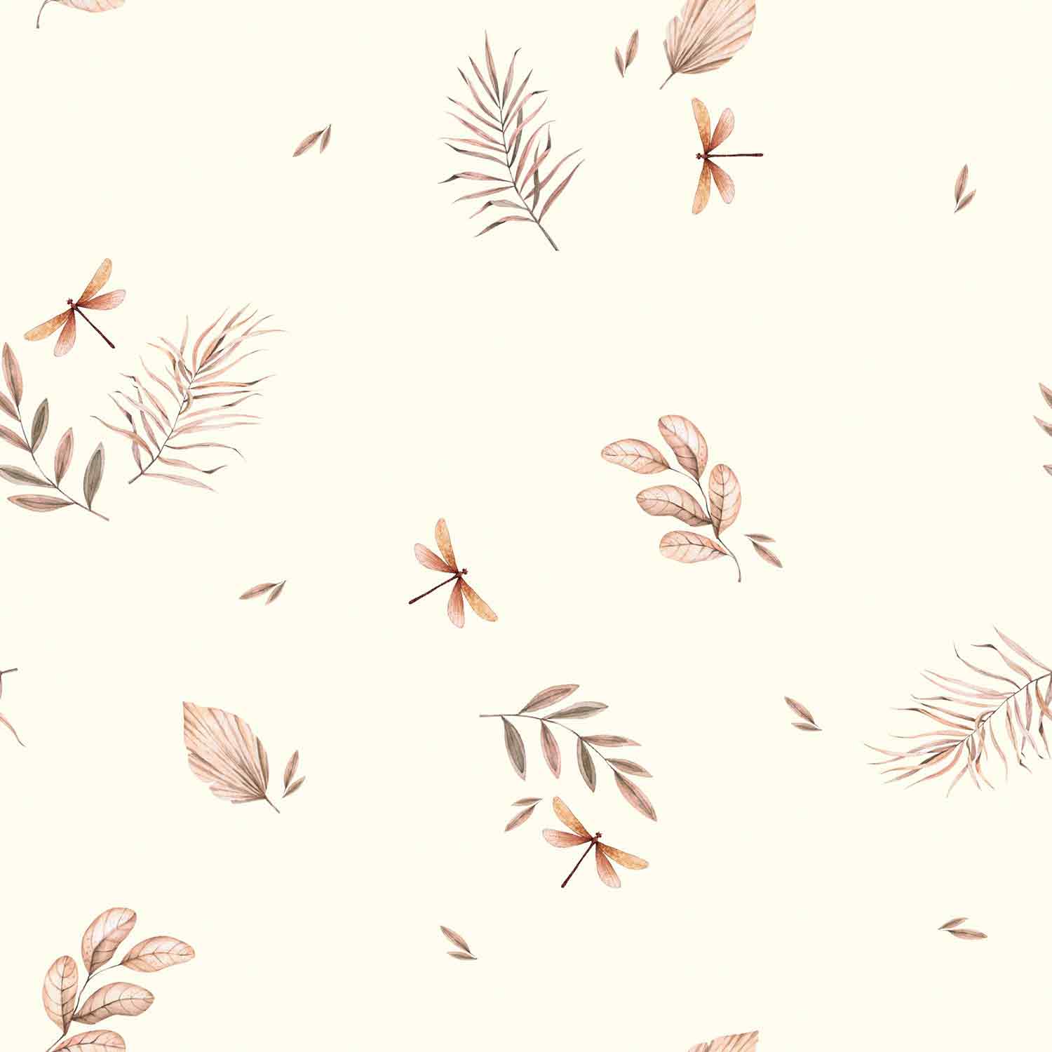 Die Oberfläche ist wollweiß und mit Herbstblättern und Libellen bedruckt.