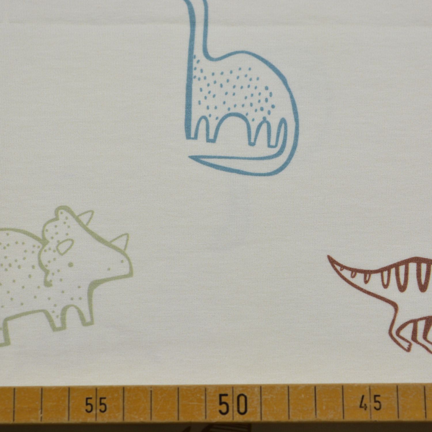 Dieser hochwertige Baumwoll-Jersey überzeugt durch seine angenehme Elastizität, den weichen Griff und das liebevoll gestaltete Dinosaurier-Motiv. Die Jersey-Qualität ist dehnbar, formstabil und besonders hautfreundlich – ideal für bequeme Bekleidung und kreative Nähprojekte.