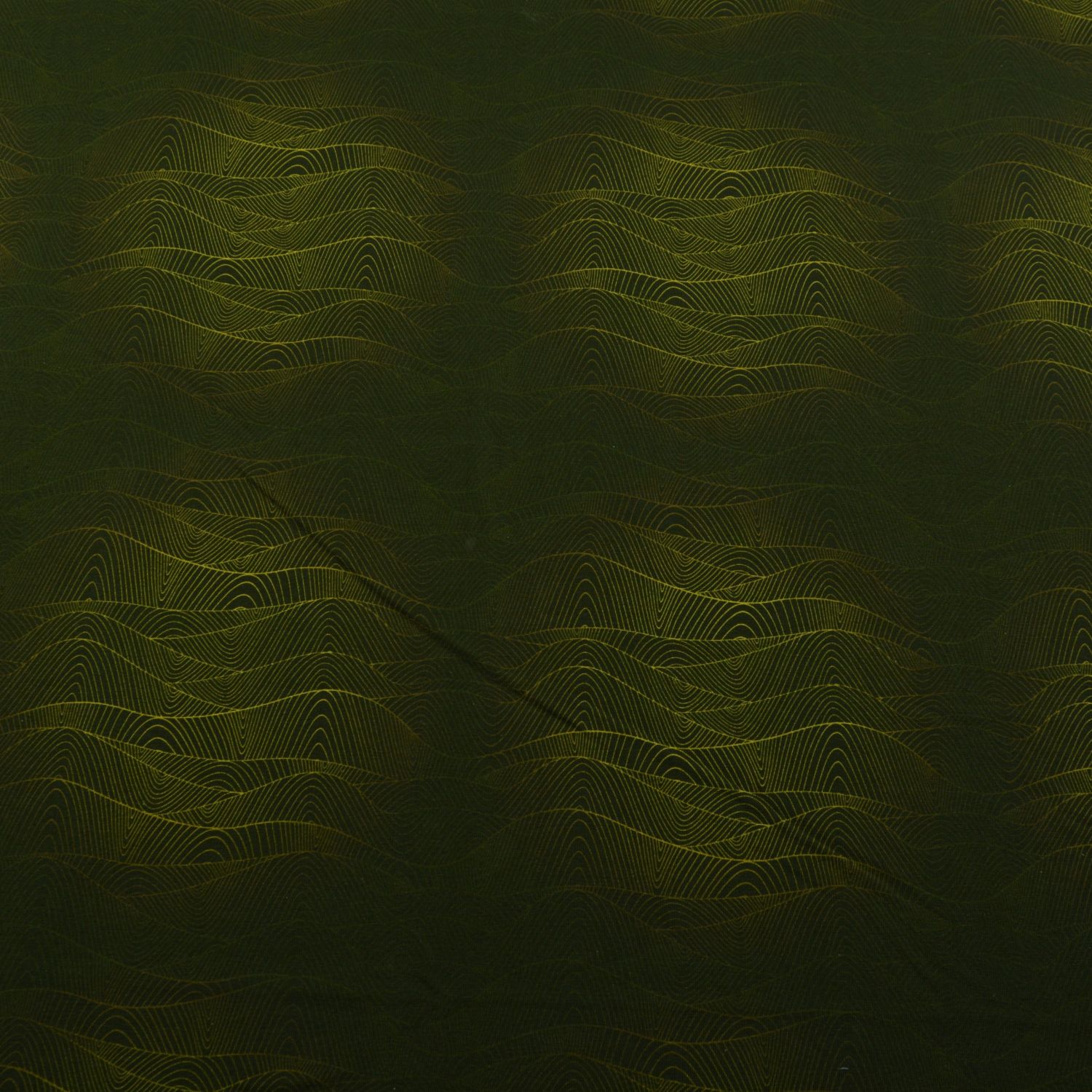 Dieser moderne French Terry überzeugt durch ein stilvolles, fein ausgearbeitetes Linienmuster in warmen Oliv- und Grüntönen auf dunklem Hintergrund. Die geschwungenen, wellenartigen Linien verleihen dem Stoff eine elegante, lebendige Struktur und sorgen für eine besondere Tiefenwirkung.