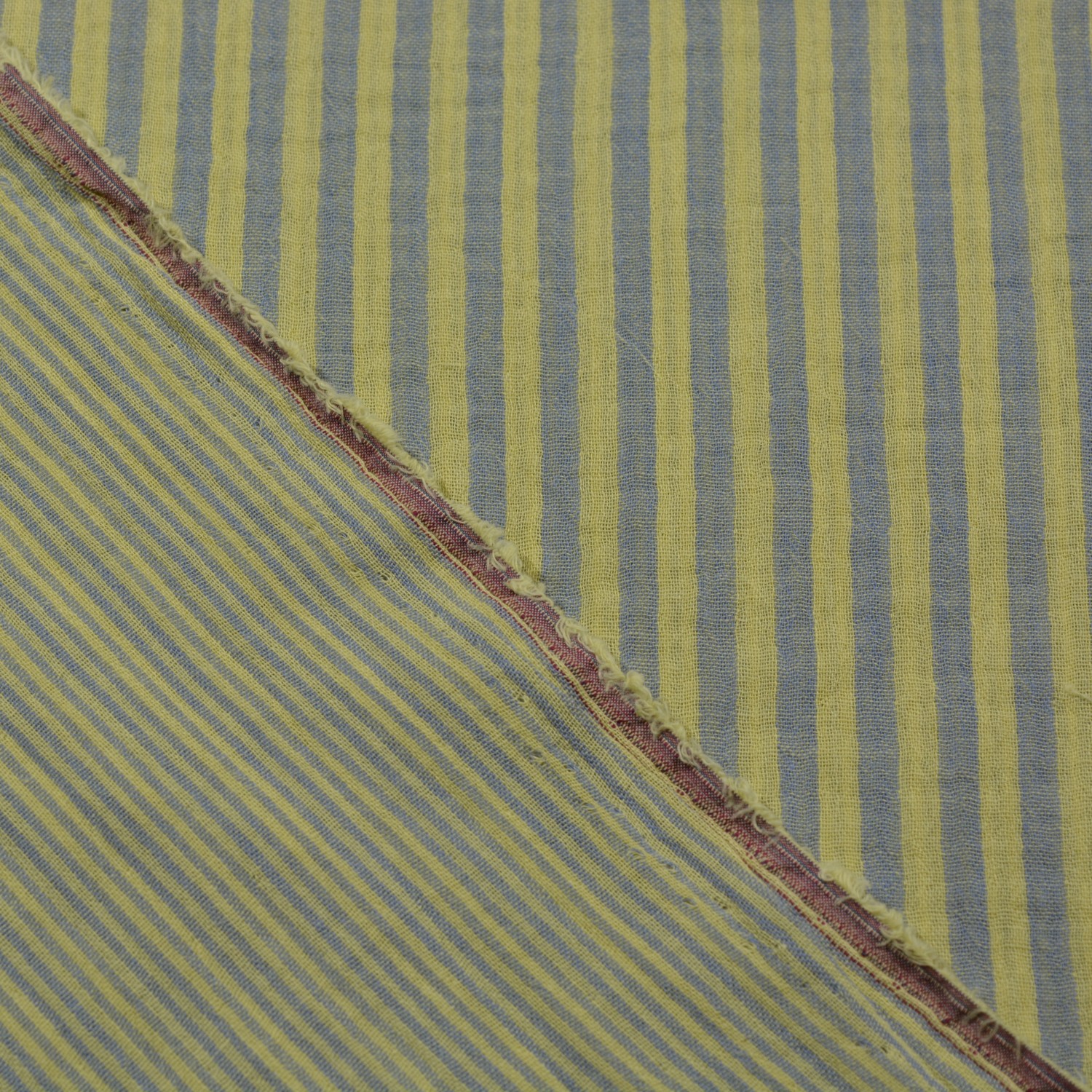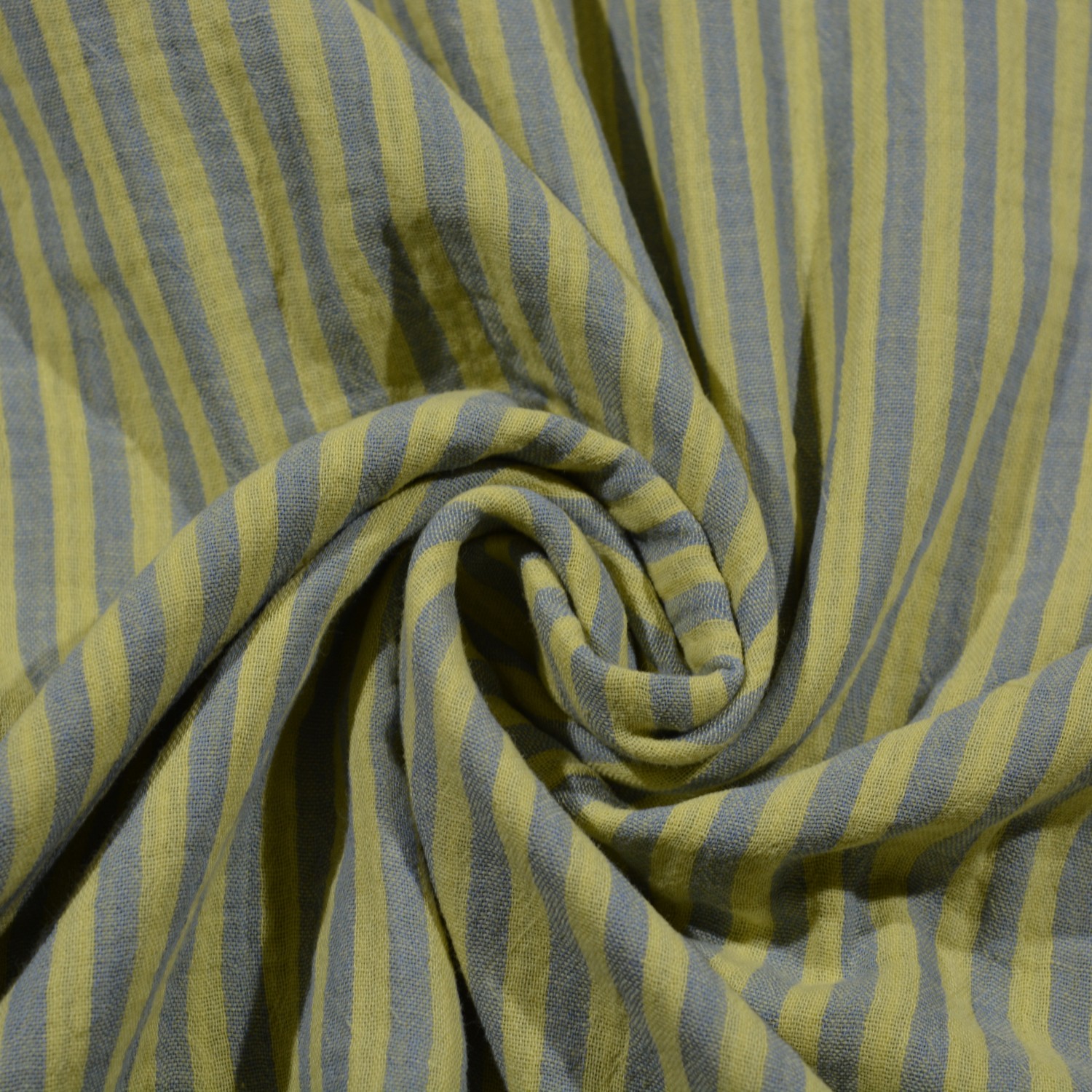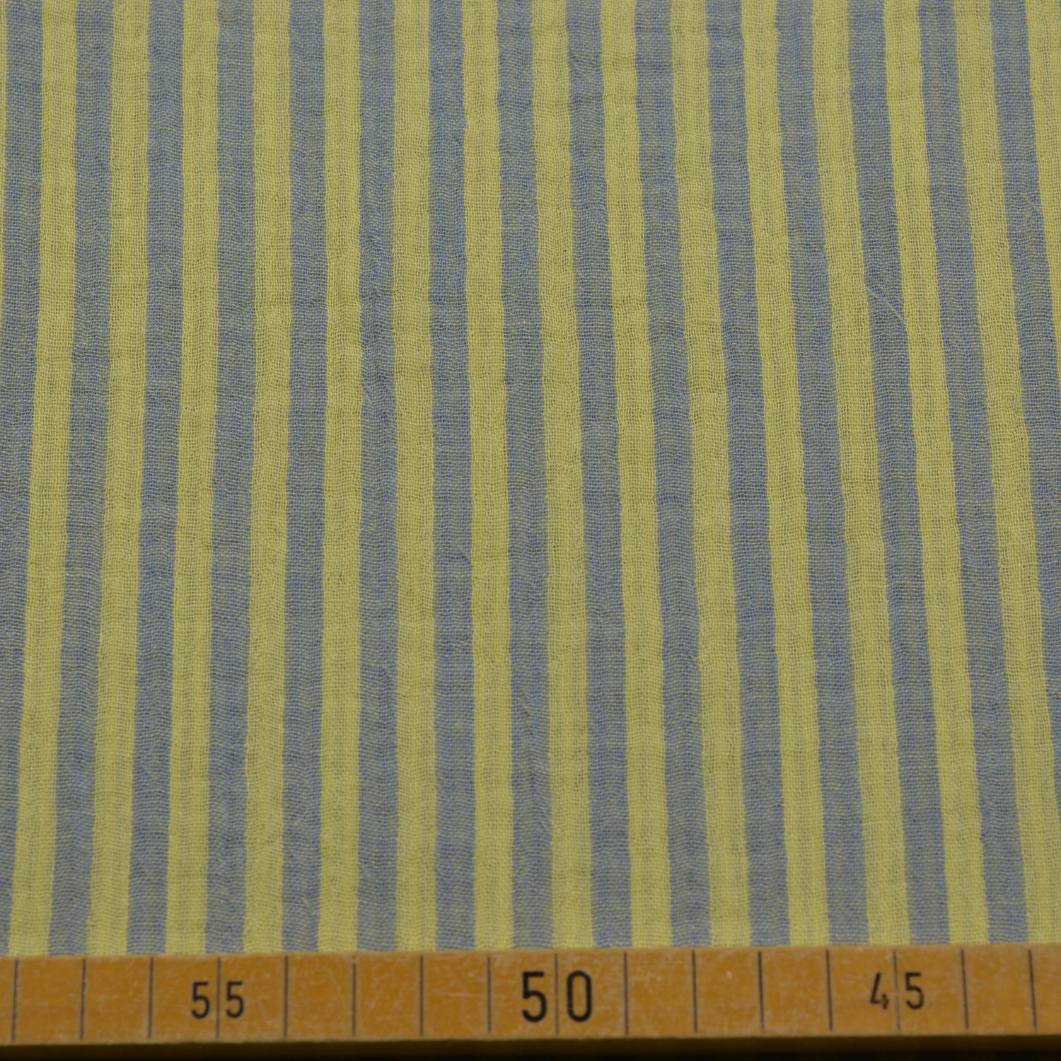 Dieser hochwertige Musselin Doubleface aus 100% Baumwolle überzeugt durch seine stilvolle Farbkombination aus Lemon und Baltic. Die garngefärbte Verarbeitung verleiht dem Stoff ein markantes Streifenmuster, das auf Vorder- und Rückseite in unterschiedlichen Breiten erscheint. Die weiche, atmungsaktive und hautfreundliche Qualität macht diesen Stoff ideal für sommerliche Bekleidung, Tücher, Blusen, Baby- und Kinderbekleidung sowie leichte Heimtextilien. Durch die doppellagige Webart fühlt sich der Stoff angenehm an und bietet vielseitige kreative Einsatzmöglichkeiten.