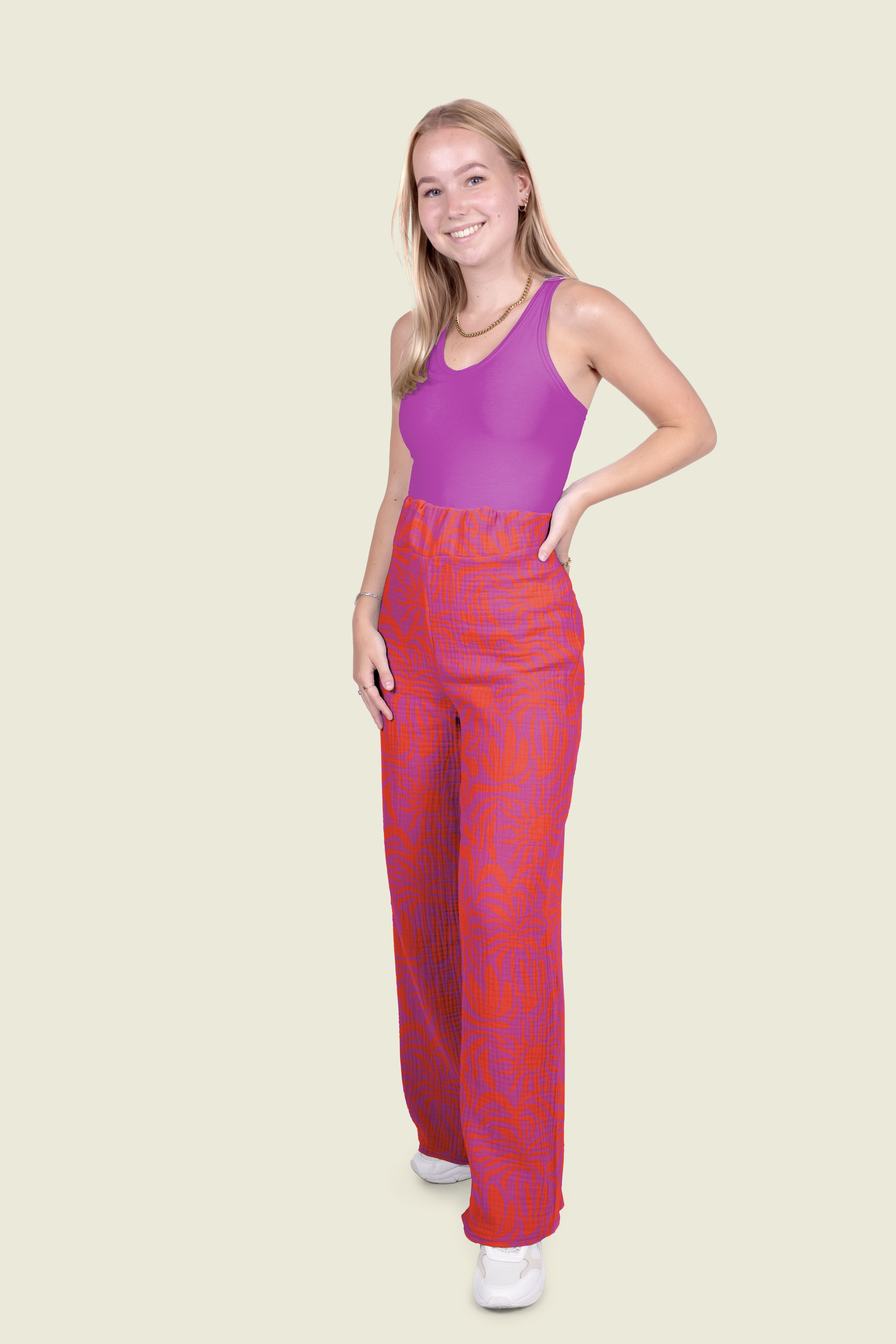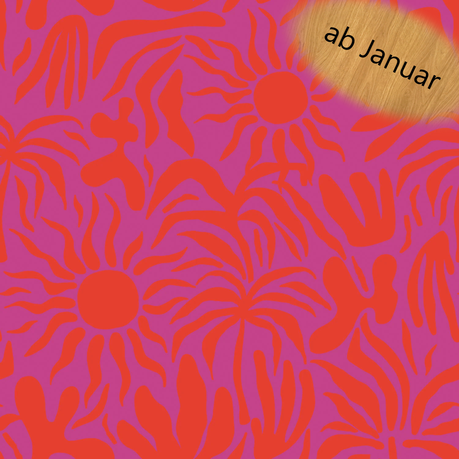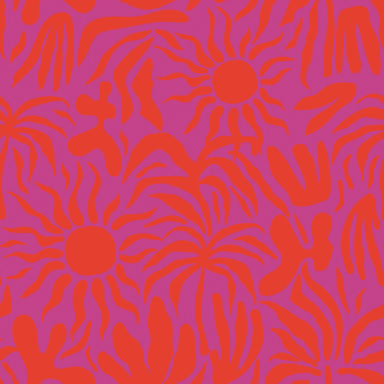 Musselin – Maribel mit Sonnen- und Palmenmotiv in Pink & Rot